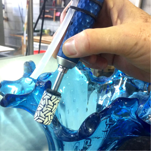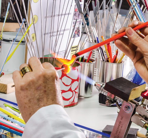 O trabalho com maçarico é empolgante. Consiste na transformação de varetas de vidro em vários objetos de pequena proporção como, contas para colares, pulseiras e brincos, puxadores para armários e gavetas, pequenos objetos, esculturas rebuscadas e o que a sua imaginação e habilidade permitir. É um trabalho colorido, pois há uma variedade enorme de cores sólidas e transparentes. A chama do maçarico, chega a uma temperatura de 1200ºC o que torna esta experiência fascinante.